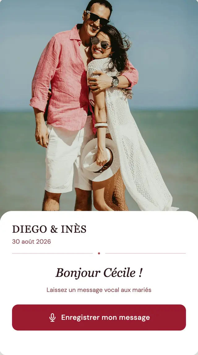 Votre mariage est un jour unique, rempli d'amour et d'émotion. Gardez un souvenir impérissable de ce moment en enregistrant les voix des personnes qui comptent le plus pour vous.